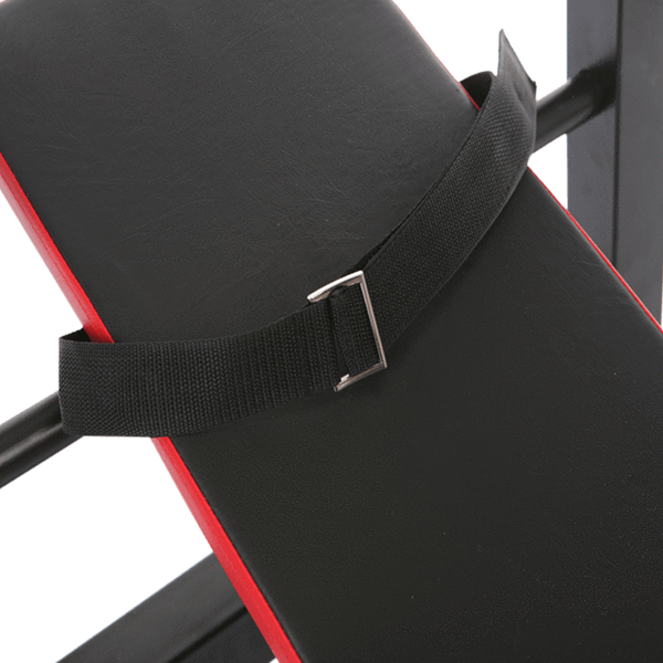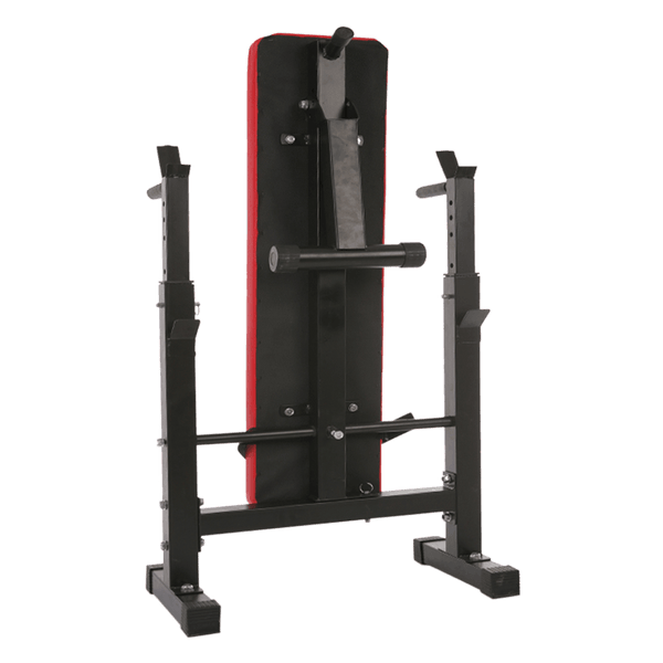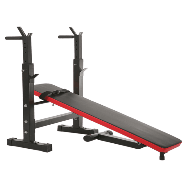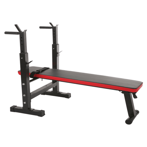 This weight bench is ideal for anyone who likes a full workout but at the same time faces some space constraints at home. There are 2 adjustable positions, flat and incline and adjustable height for the barbell support. It comes with extra features, dip handles and foot strap for sit up.