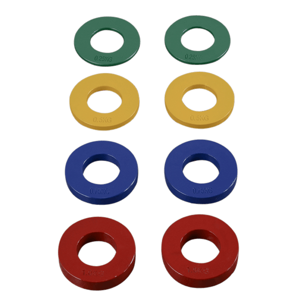 - Each set comes with a pair of 0.25kg, 0.5kg, 0.75kg and 1kg plates.