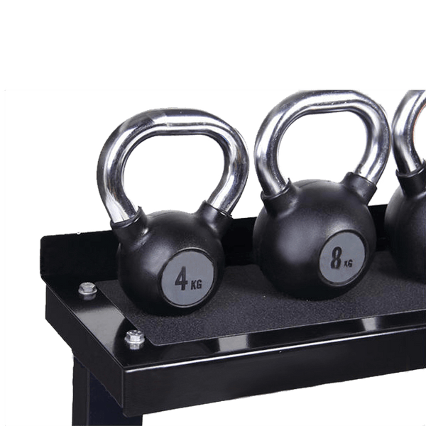 - Can hold up to 8-10 kettlebells per tier (2 x rows per tier)