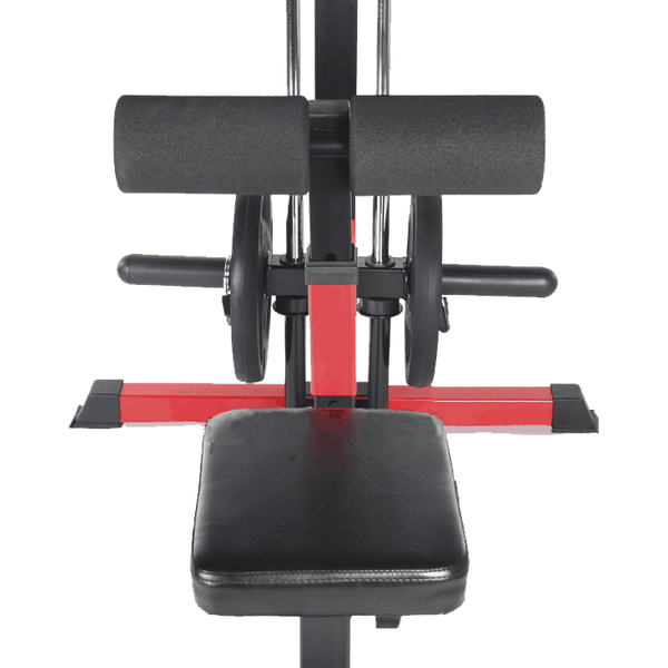 - Comfortable, multi-position foam rollers lock you in position for high pulley lat work