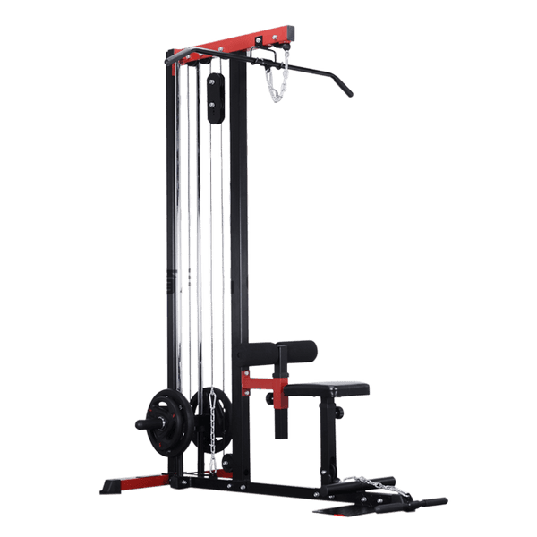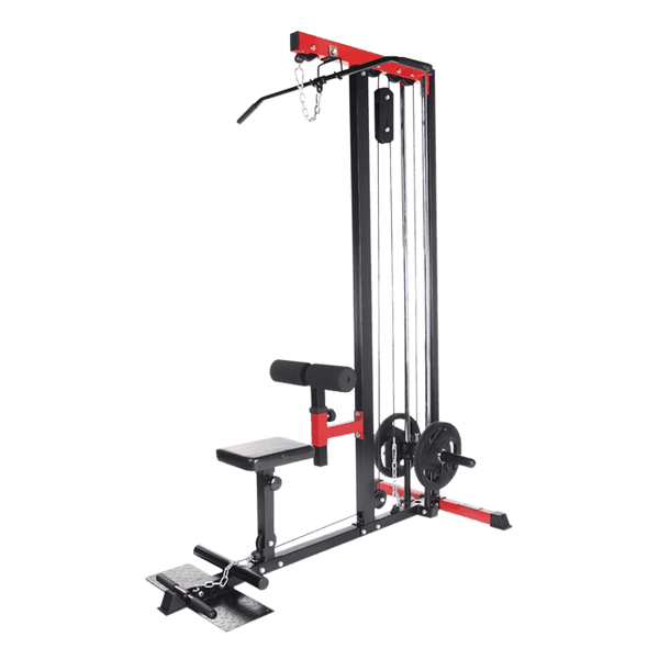 - Free-weight lat machine for targeting upper body muscles