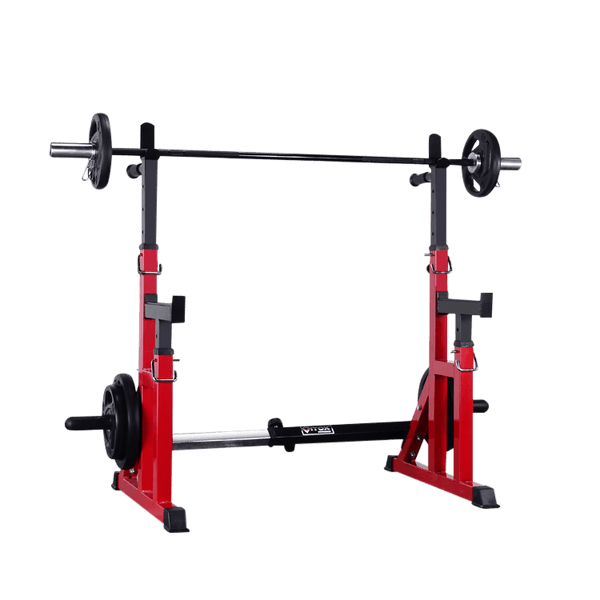 - Adjustable safety/spotter height for different workouts.
